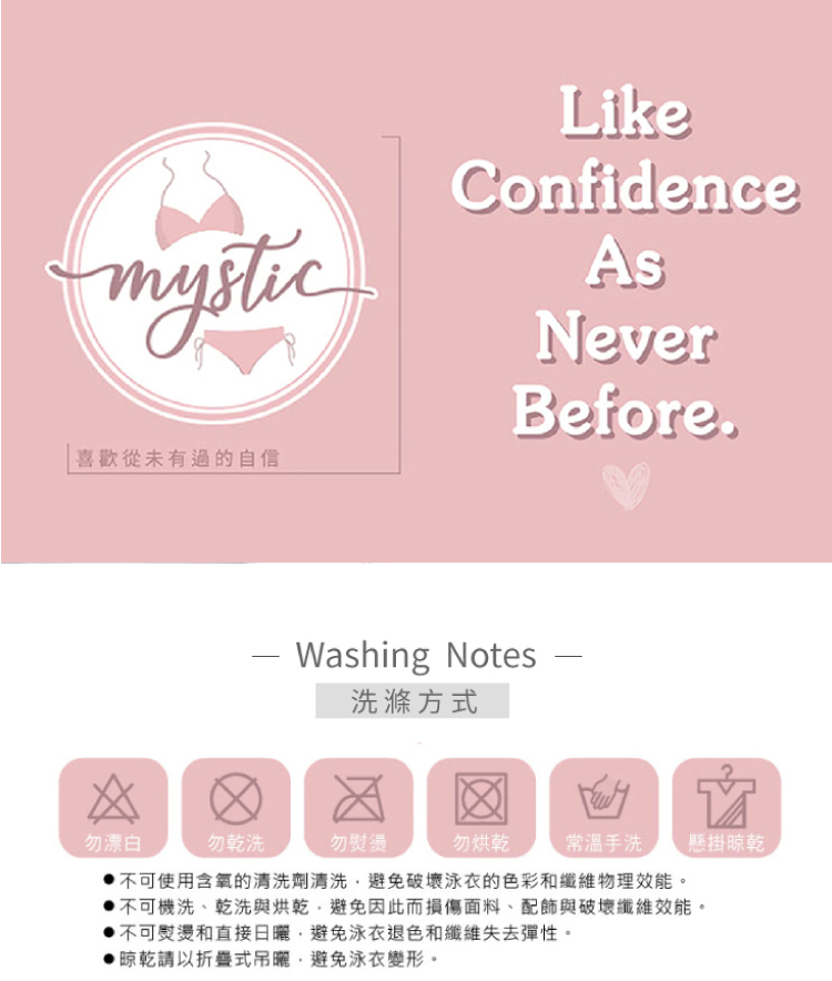 ※ 「已拆封之個人衛生用品(如泳衣/內衣褲)」,依消保法之「通訊交易解除權合理例外情事適用準則」,恕不提供七天猶豫期之適用。 ※ 意指「經拆封後之個人衛生用品(如泳衣/內衣褲)」,除商品瑕疪,恕不提供退換貨之服務,請務必依自身身型評估並確認尺寸後選購哦。 ※ 由於每台顯示螢幕出廠設定值以及個人偏好設置不同,若有些許色差屬正常現象,實際以收到實品為準。 ※ 手工量測尺寸,由於每款商品版型與彈性屬性有所差異,